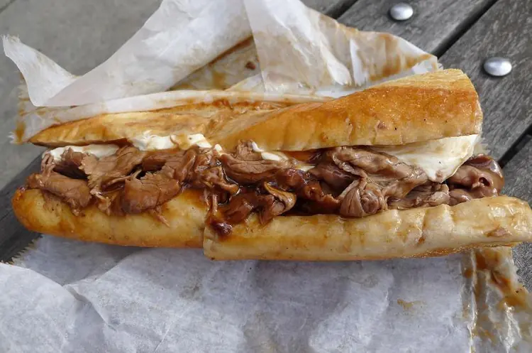 Roast beef, gravy and fresh mozzarella sandwich all made right in the shop. This authentic Italian Deli serves up some o fthe tastiest sandwhiches on italian bread with the perfect crunch.